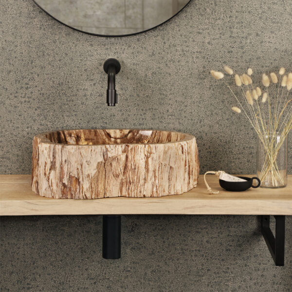 De Differnz Fossil is een bijzondere waskom gemaakt van een versteende stronk. Dit maakt deze waskom een aparte verschijning, maar toch past hij prima bij verschillende stijlen badkamers. De waskom heeft een warm crème kleurig/zwart uiterlijk en heeft een diameter van ongeveer 40 – 50 cm. De waskom heeft geen speciale behandeling nodig en past op alle wastafelbladen. Om uw waskom goed te houden is het nodig deze meerdere malen per jaar te impregneren. Dit voorkomt vlekken van water en vuil en zorgt ervoor dat uw waskom lange tijd goed blijft. U kunt hiervoor ieder geschikt impregneermiddel voor natuursteen gebruiken. Om de waskom schoon te houden kunt u dit het beste één keer per week met een zachte doek en een zuurvrij schoonmaakmiddel schoonmaken en daarna met een doek droogwrijven. De buitenkant kan met een zachte borstel worden schoongemaakt. De waskom wordt exclusief sifon en lange, always open, afvoerplug geleverd.